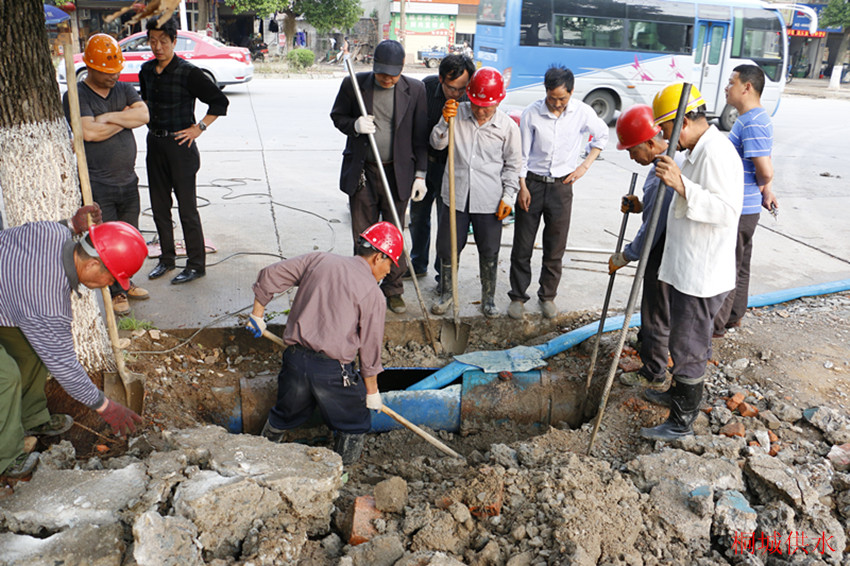 抢修人员正在开挖爆裂处