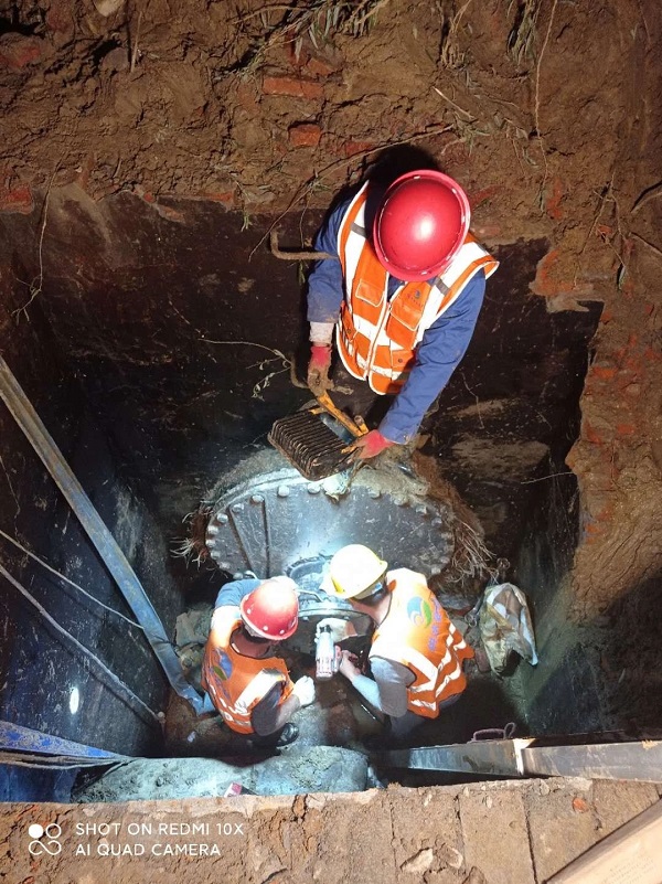 为了尽快恢复供水,全体抢修人员不懈怠、不拖沓,在泥泞的草地和约4米深的竖井中,经过近10个小时的连续高强度协同作业,于当晚18:30完成此次紧急抢修任务。随着潺潺的清水陆续流入百姓家中,公司供水指挥调度中心监测数据显示管网压力均恢复正常。至此,此次管抢修施工圆满完成。